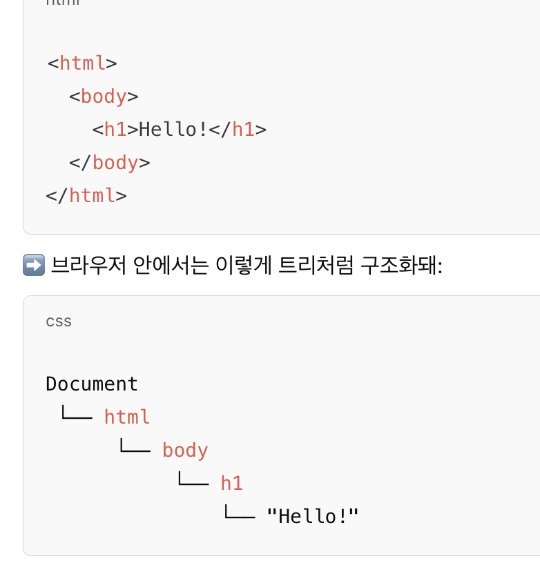 HTML을 구조화 된 DOM으로 만든다.
