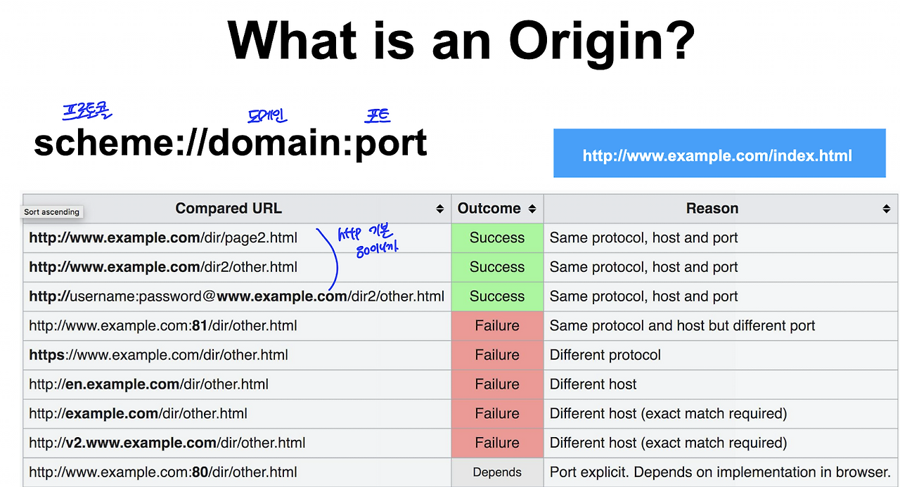 프로토콜, 도메인, 포트가 같아야 같은 origin이다.