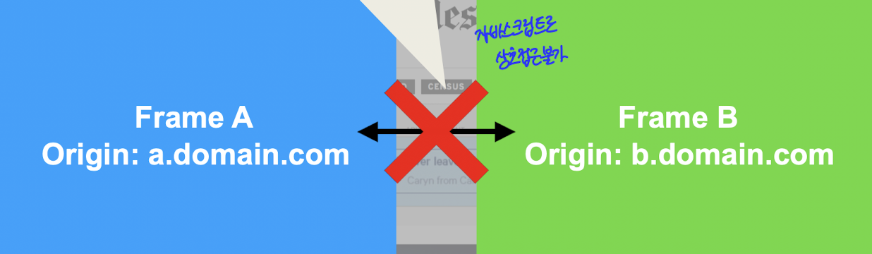 origin이 다른 컨텐츠는 다른 프레임에 분리해서 통신을 제한한다.