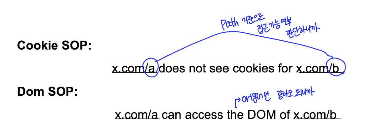 이렇게 쿠키와 dom의 sop 기준이 다르다.