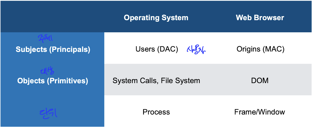 웹 보안 목적 - 무결성(a가 b사이트에 영향 안미침), 기밀성(a사이트가 b사이트의 정보를 빼앗지 않아야한다.)