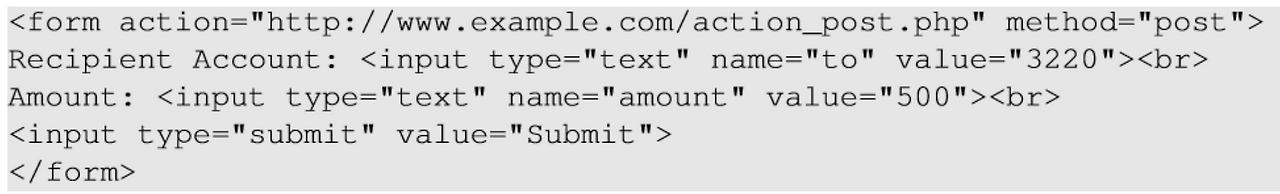 공격자가 이러한 위조된 요청을 만들고, 사용자가 이를 클릭해서 브라우저에서 이러한 요청을 보낸다면, 계좌번호 3220으로 500만원이 이체된다.