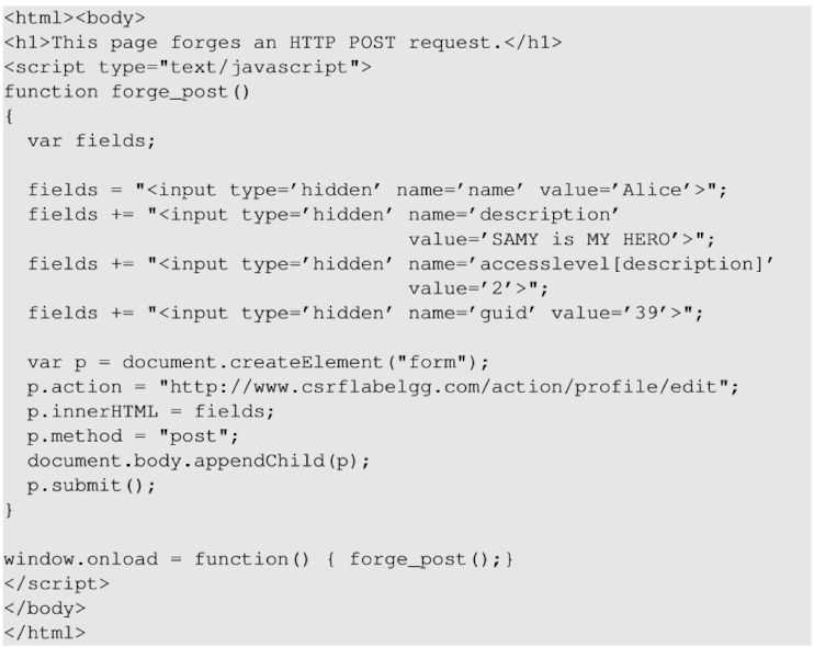공격자는 cross-site request를 보낼 웹페이지를 만든다