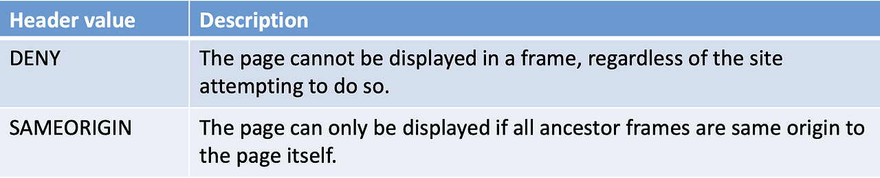 이 때 타겟 페이지는 X-FRAME-OPTIONS헤더를 설정하지 말아야한다.