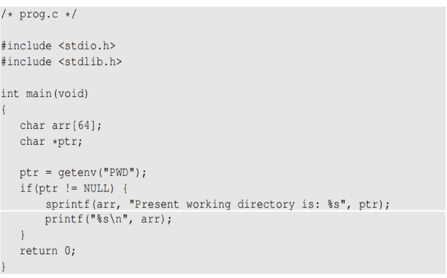 이 프로그램은 PWD를 알기 위해 getenv()를 사용한다.