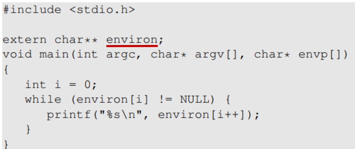 envp는 main 내부에서 존재하고, environ은 글로벌 변수이다.
