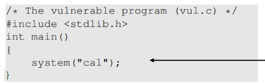 공격자는 위 코드를 cal이라는 실행파일로 만든다.