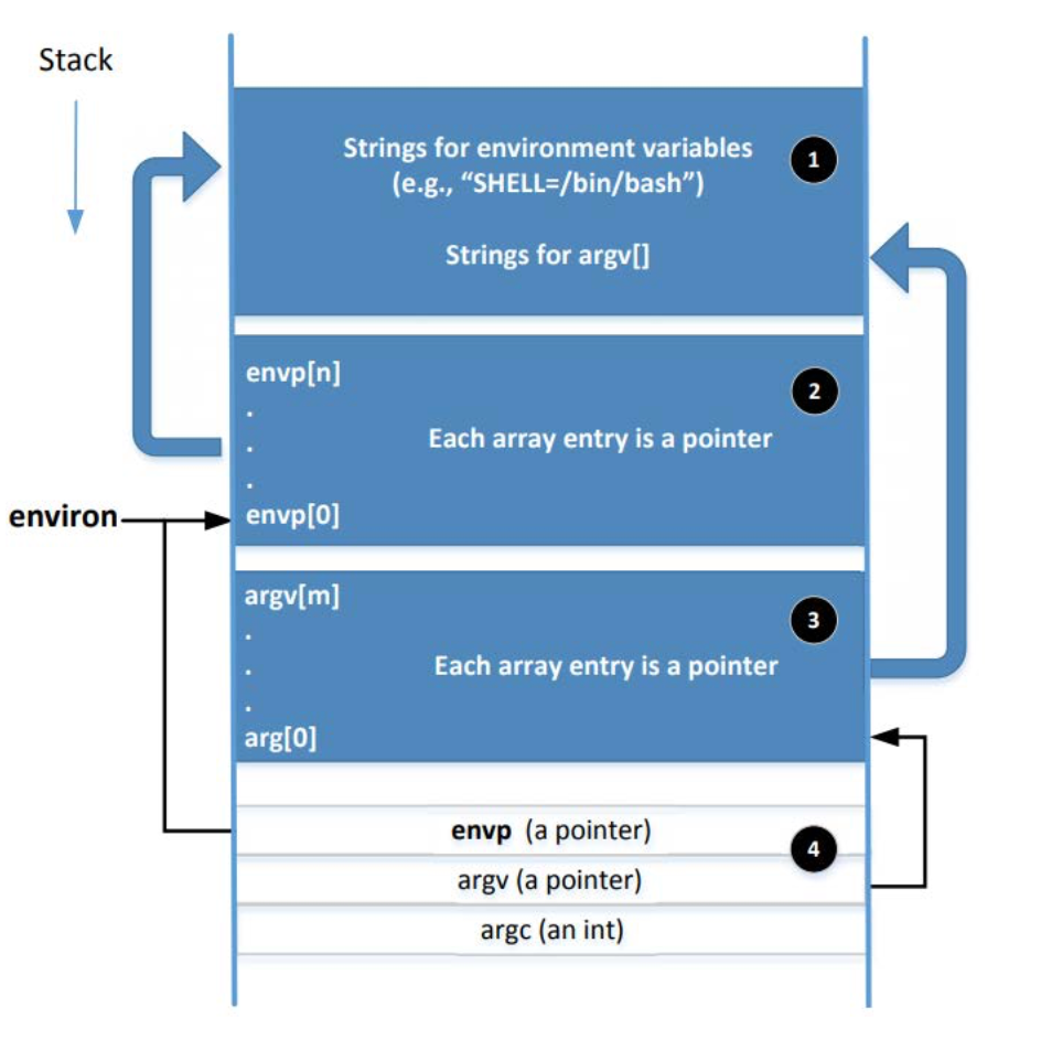 처음에는 둘이 같은 곳을 가르킨다. 근데 만약 환경변수가 변화되면 environ은 환경변수가 새로 생성된 힙을 가르키게된다.