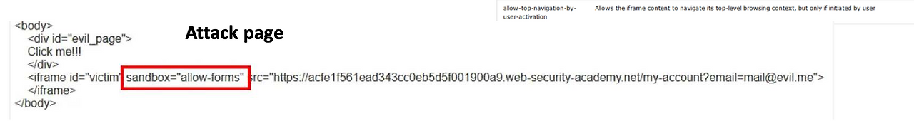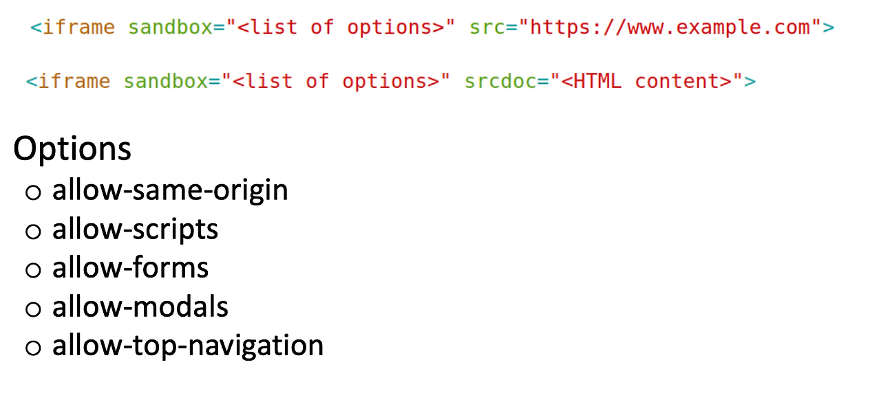 sandbox는 iframe 내부에서 할 수 있는 것을 제약하는 것을 말한다.
