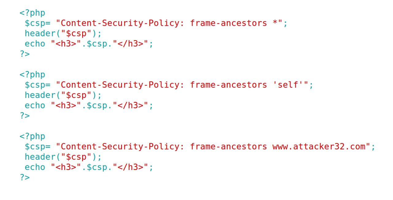 frame-ancestors는 어떤 출처가 iframe으로 여는 것을 허용할것인지를 결정한다.