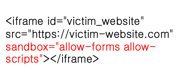 sandbox는 iframe 내부에서 할 수 있는 것을 제약하는 것을 말한다.