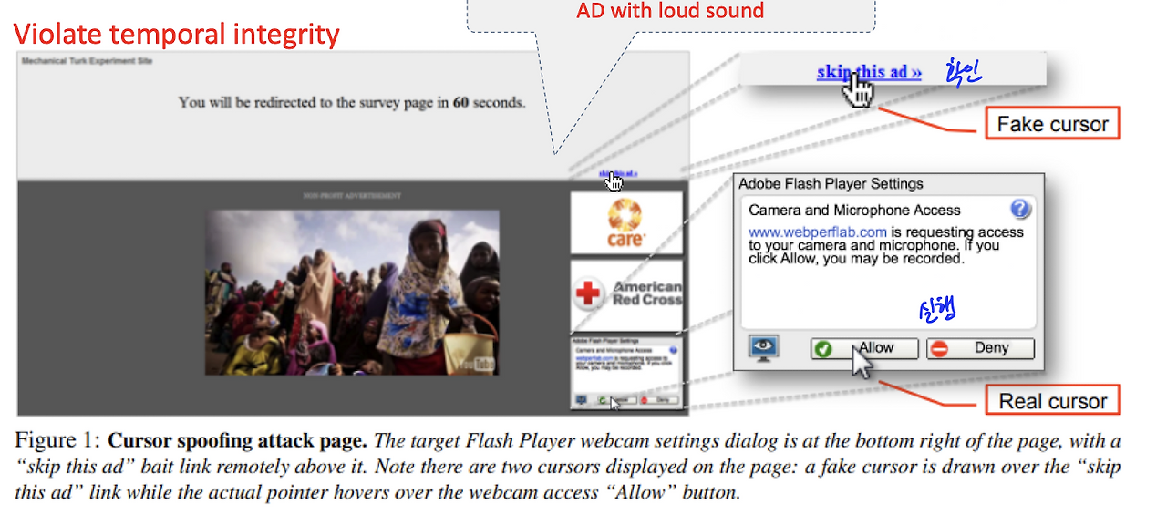 이런식으로 가상 커서를 만들어서 사용자를 속인다.