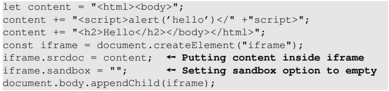 샌드박스는 iframe으로 온 코드들의 기능을 제한한다.