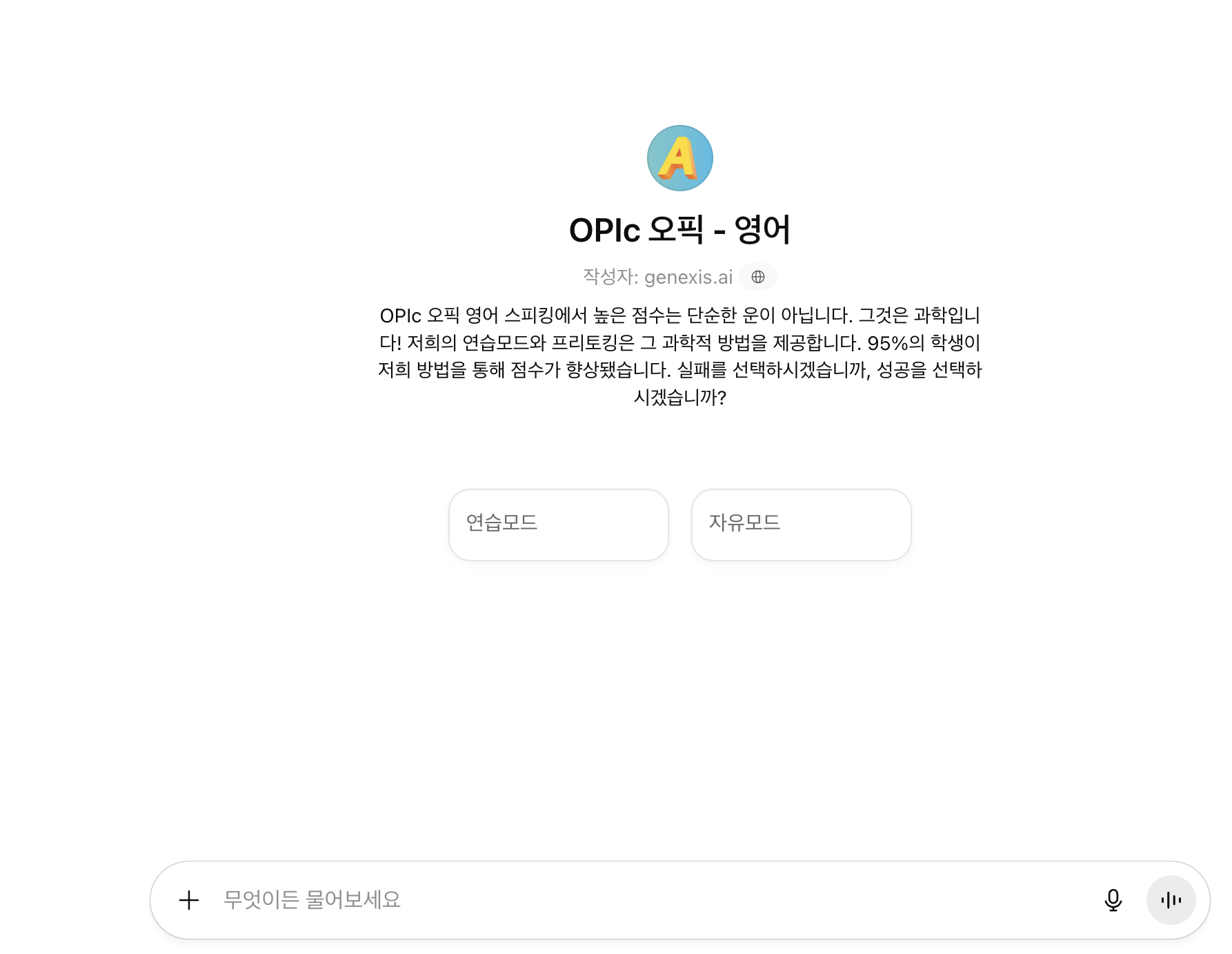 근데 지피티로 모의고사는 불가능해요 왜냐면 말하다가 생각하느라 조금의 공백이 생기면 바로 말을 끊어버리더라구요..