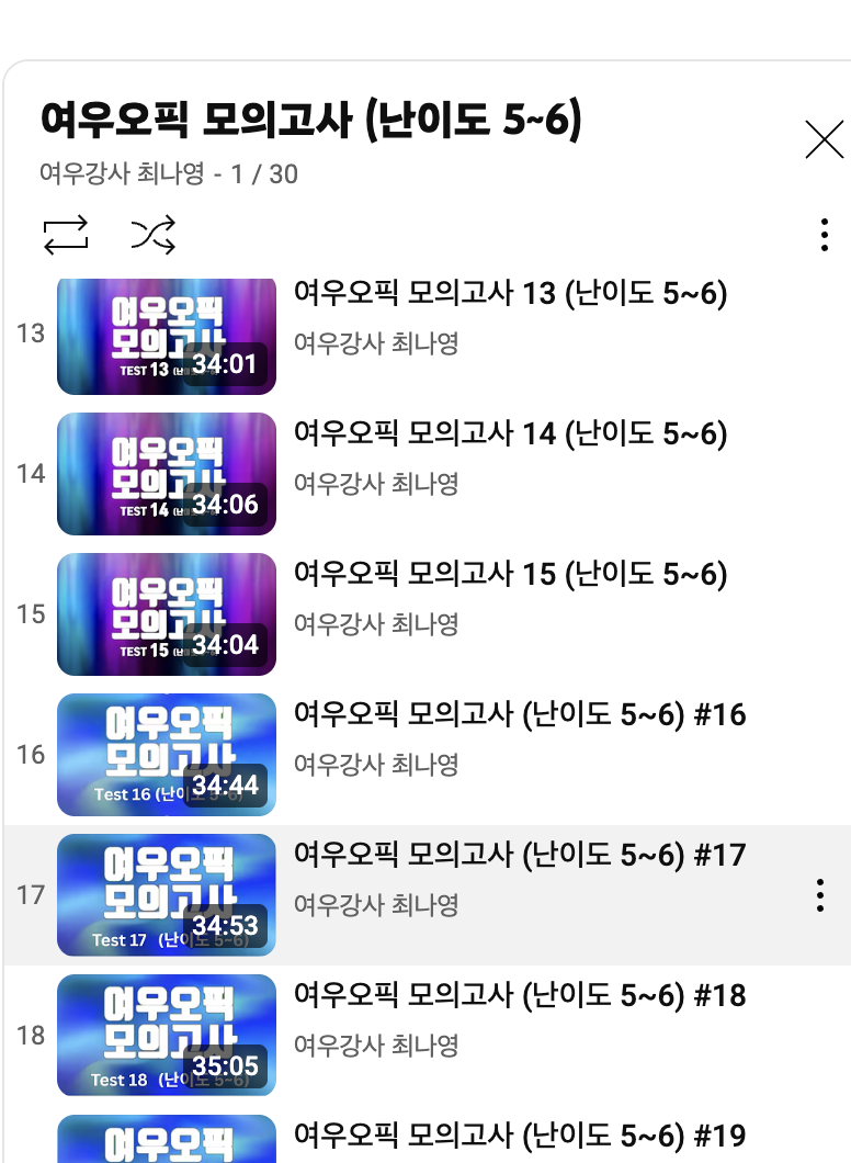 처음에는 몰랐는데 16번부터가 최신 업데이트된 모의고사더라구요