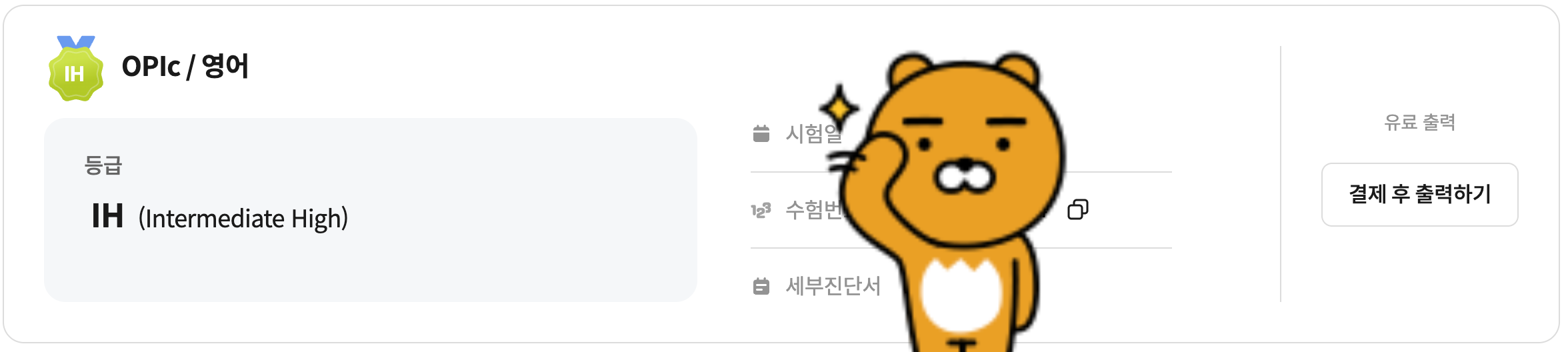놀랍게도 5일 공부하고 IH를 받았습니다