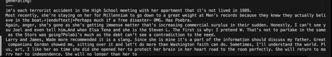 그래서 강의자분은 이 GPT를 100만개의 토큰이 있는 데이터셋으로 구현해보셨다고 한다.
