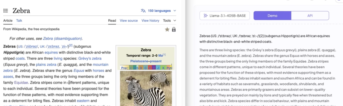 예를 들어 위키피디아의 데이터를 학습한 모델에서 얼룩말에 대해 설명해달라고 하면 그저 위키피디아에 있는 글을 암송한다.
