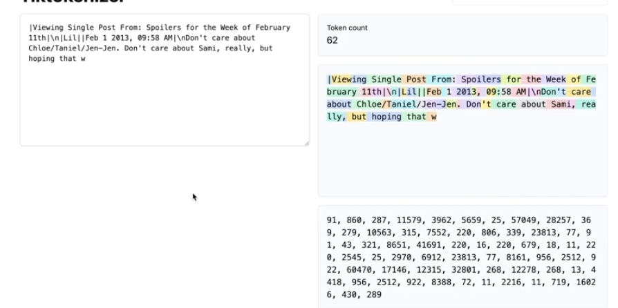 이것은 실제 GPT가 글을 토큰화 하는 방식이다.