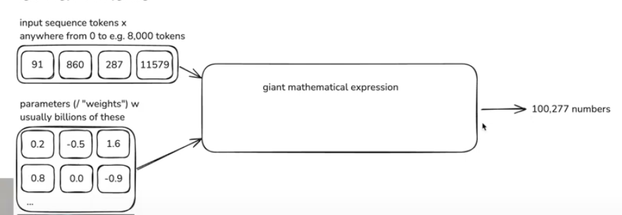 우리의 어휘는 100277 종류의 토큰을 가지고 있기 때문에 neural network를 통해서 각 토큰이 다음에 올 확률을 구할 수 있다.