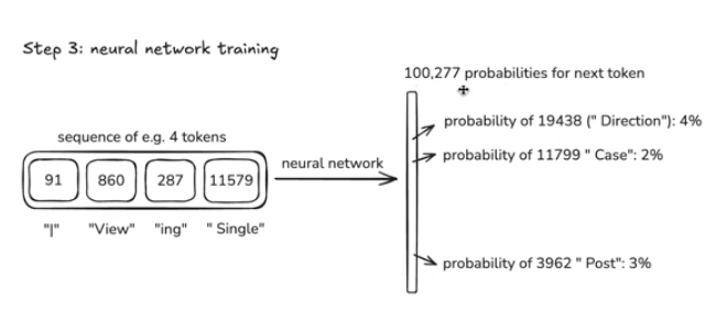 우리의 어휘는 100277 종류의 토큰을 가지고 있기 때문에 neural network를 통해서 각 토큰이 다음에 올 확률을 구할 수 있다.