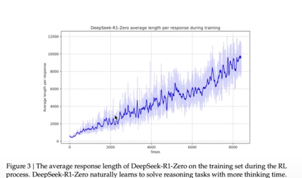 논문에서는 이를 스스로 문제를 풀어가면서 깨닫고, 그 방향으로 다시 해결해나가는 과정에서 토큰이 많아진다고 설명한다.