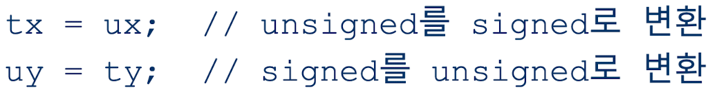 c언어에서는 비부호형에서 부호형으로의 변환을 허용한다.