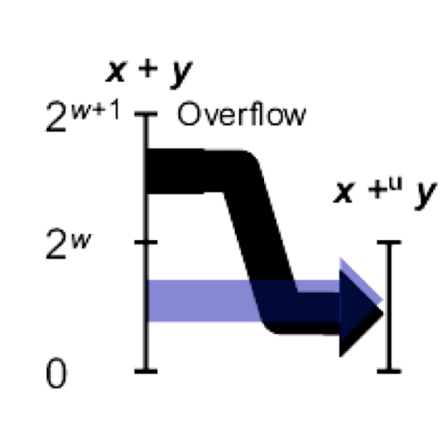 그래서 비부호형에서의 덧셈에서의 정답은 두 값을 더한 값에서 2^w를 나눈 값의 나머지라고 표현할 수 있다.