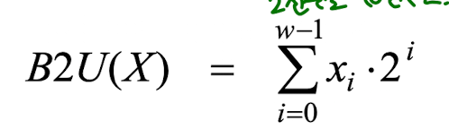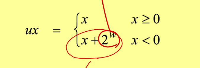 즉 다음과 같은 규칙으로 변환되는데, 기존 값이 양수라면 그대로 출력되고, 음수라면 기존 값에 2^w를 더한 값으로 변환된다.