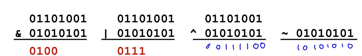 비트연산자는 & | ~ ^가 있다. 정수형 연산자에 적용 가능하고, 인자들을 비트벡터로 처리하고, 비트들끼리 연산한다.