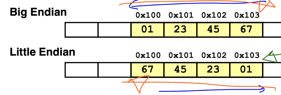 여기서 big endian은 가장 덜 중요한 byte가 최대주소에 저장되고,