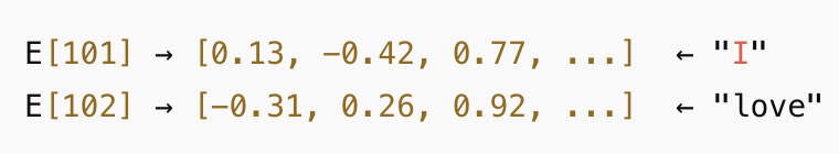 아니 사실 좀 지금 생각하면 어이없긴 한데 초반에 이 값이 랜덤으로 생성된다고 해서 당연히 모든 경우에 랜덤생성인줄 알았는데 그건 모델 생성 완전 초반 이야기이고, 학습을 하면서 이 임베딩 행렬이 업데이트 되는 것이라고 한다. 그래서 토크나이저로 id 값을 얻으면 임베딩벡터 안에서 해당 id에 해당하는 행렬을 가져와서 계산을 하면 되는 것이다.