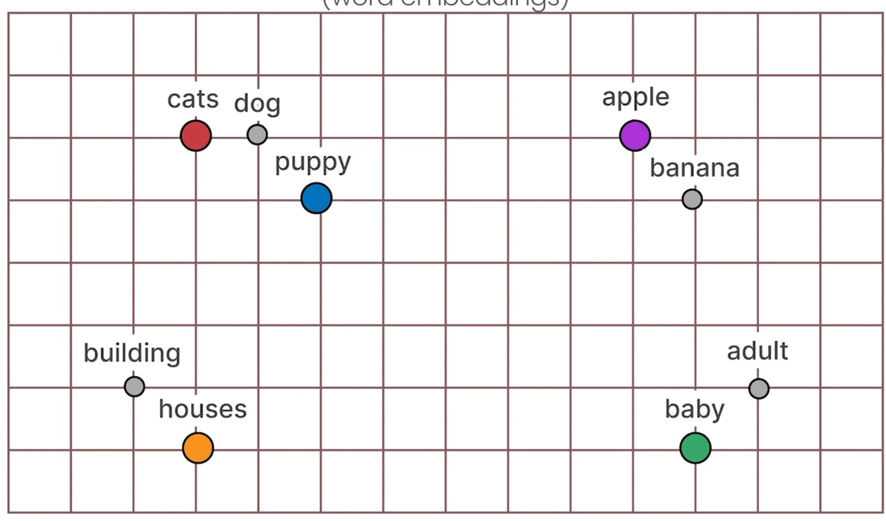 newborn, animal... 등의 속성을 가지고, 높은 연관성이 있는 속성의 값이 높은 것을 확인할 수 있다. 이 차원수를 embedding dimension이라고 한다. dimension은 수백, 수천개가 되기도 한다.