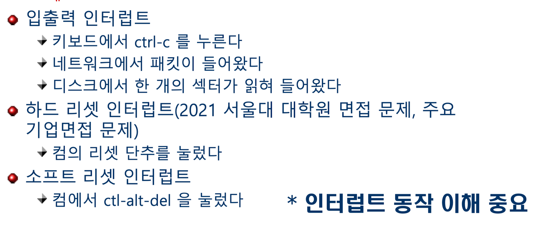 인터럽트의 예시는 다음과 같다.
