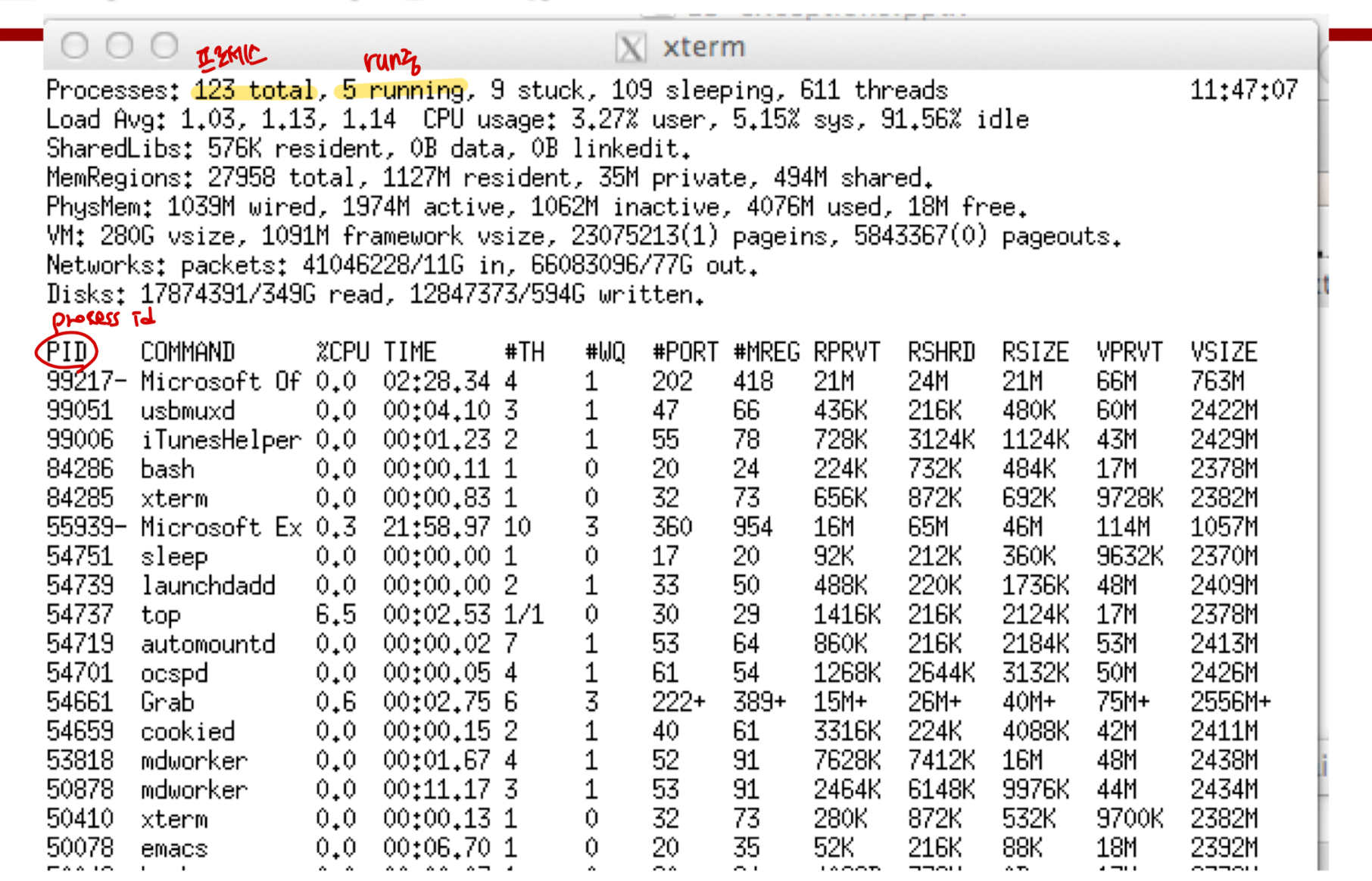 이 경우, 컴퓨터 내에서 가지고 있는 프로세스의 수는 123개이지만, active인 상태인 것은 5개 뿐이다