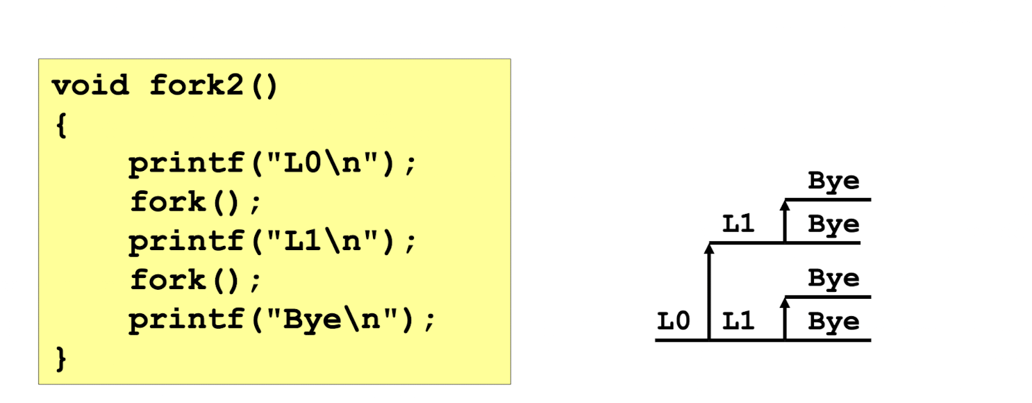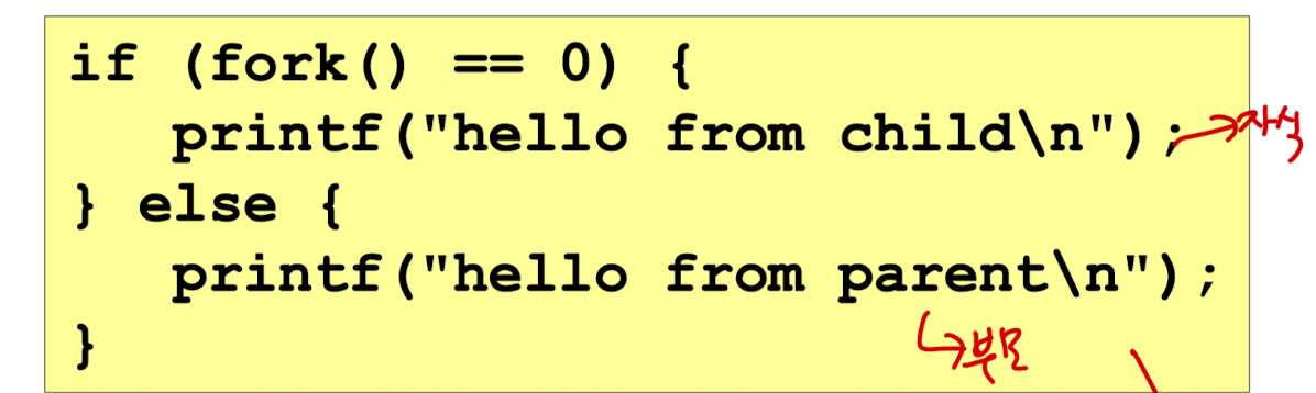 이처럼 fork() 함수는 한번 호출되지만, 두번 리턴한다는 특징이 있다.