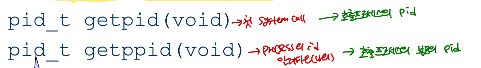 위와 같은 명령어로 현재 또는 부모 프로세스의 id를 얻을 수 있다.