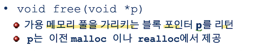free는 할당되었던 메모리를 가용블록으로 바꾸는 것이다.(이제 그만 쓰겠다는 뜻)