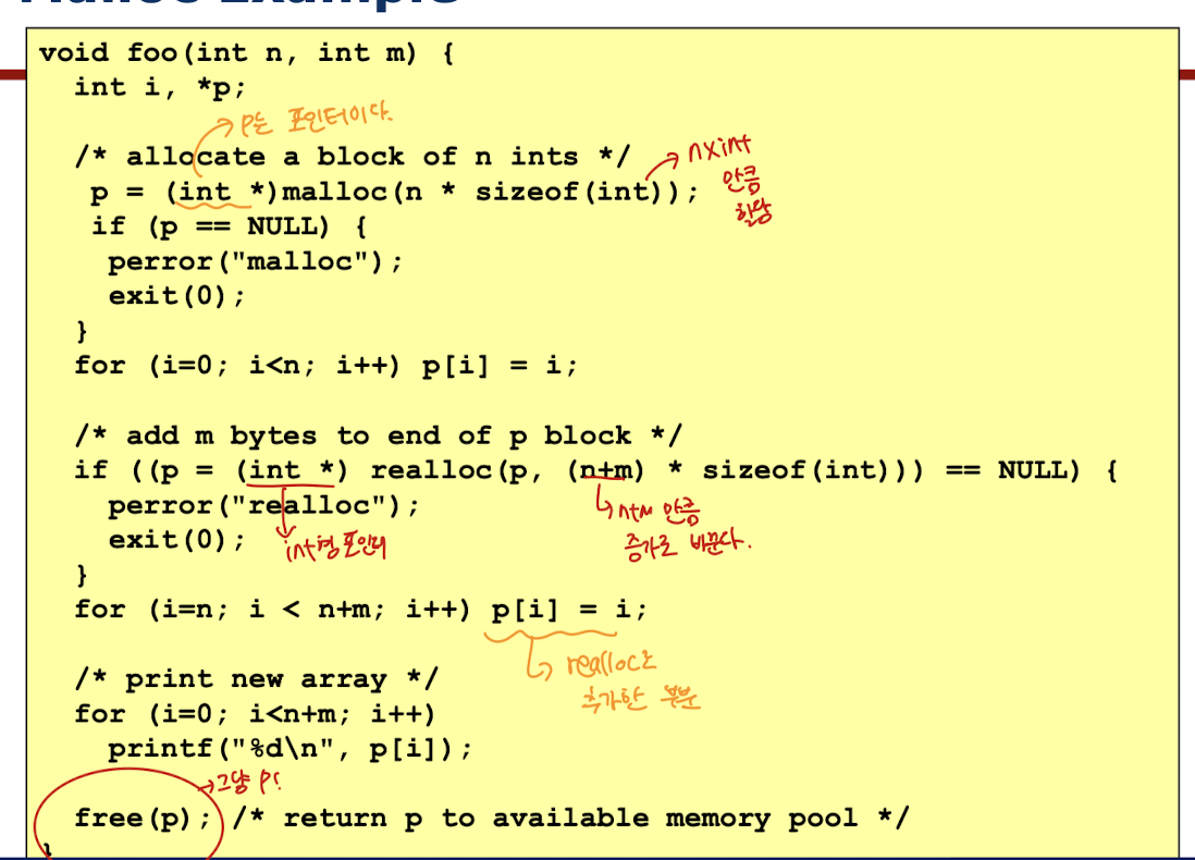 위에서는 먼저, malloc을 사용하여 n개의 정수를 만들었다.