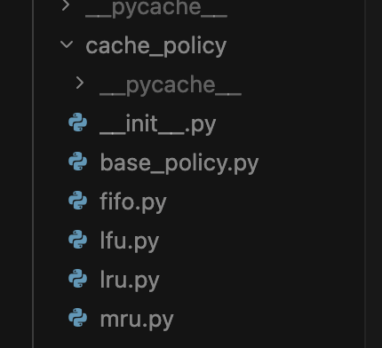 LMCache 파일 내부를 보면, 다음과 같이 정책별로 파일이 있는 것을 볼 수 있다.