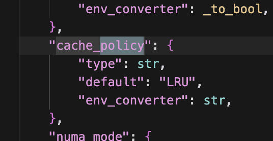 config 파일 내에 있는 _CONFIG_DEFINITIONS를 보면, 기본 값은 LRU임을 알 수 있다. 즉, 기본 poilcy는 LRU이다.