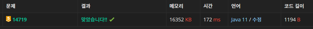 앞으로 알고리즘을 더 빠르게, 효율적으로 풀기 위해 알고리즘 개념을 많이 알아야 할 것 같고 감을 잃지 않게 꾸준하게 풀어야겠다.