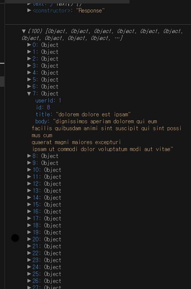 이와 같이 await를 이용하면 데이터가 정상적으로 들어온 것을 확인할 수 있다.