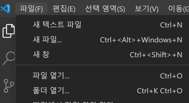 설치 완료되면 좌측 상단에서 파일 -> 새파일 클릭
