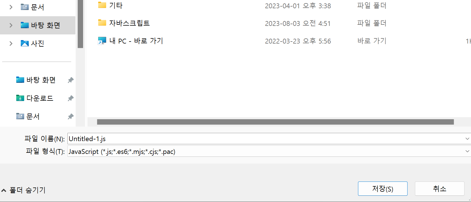 코드를 다 짠 다음 폴더에 저장하려면 ctrl + s 누르고 새 폴더 만든 후 그 안에 저장한다.